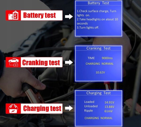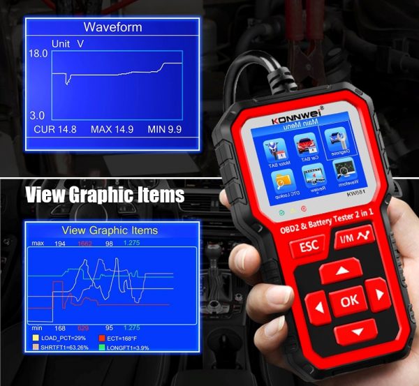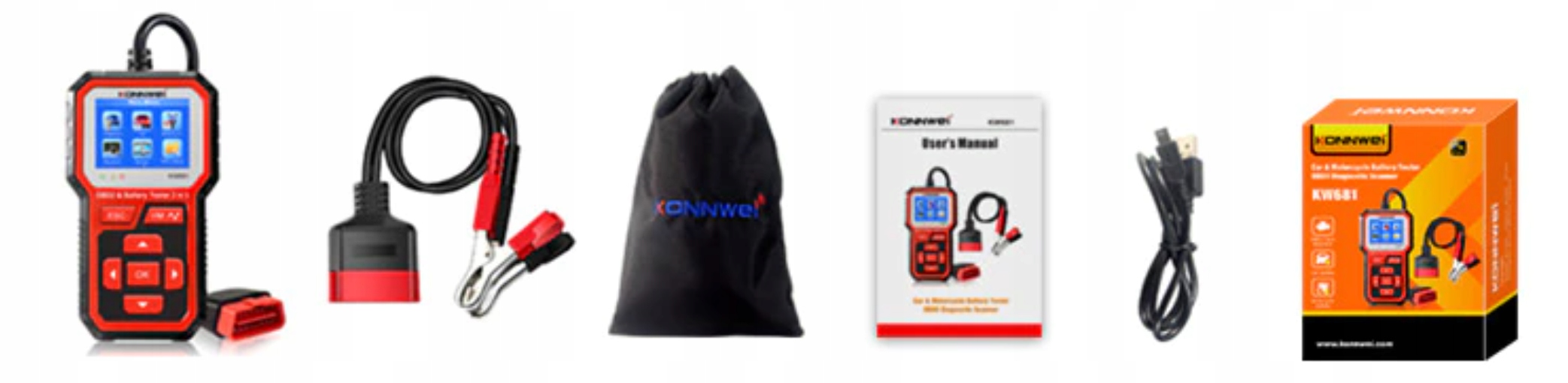Пристрій Konnwei KW681 поєднує тестер для акумуляторів та батарей та діагностичного інтерфейсу непарного 2. Завдяки цьому ми маємо можливість всебічно перевірити наш автомобіль.