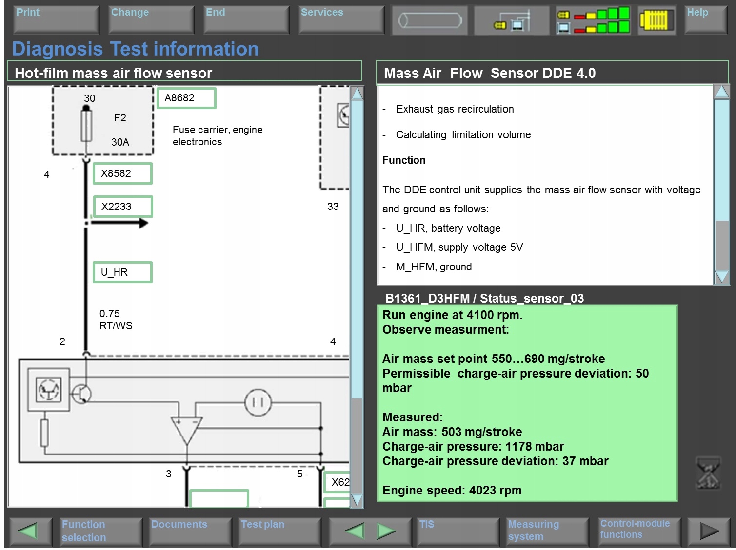 - Тестування виконавчих елементів (наприклад, дросель, клапани, датчики та інші)