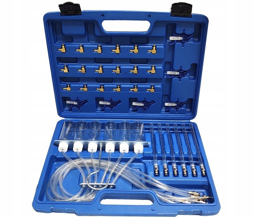 Застосування: комплект дозволяє діагностувати роботу систем вприскування Common Rail фірм: Bosch, Simens, Denso і Delphi в шестициліндрових двигунах. Діагностика передбачає підключення тестерів до переливних ліній форсунок за допомогою відповідних адаптерів і порівняння кількості палива, що подається окремими форсунками. Подача більшої або меншої дози палива через будь-яку форсунку означає її несправність.