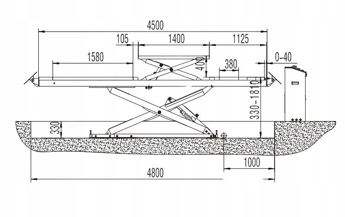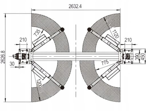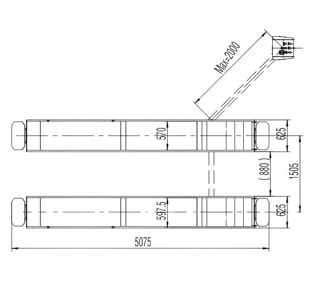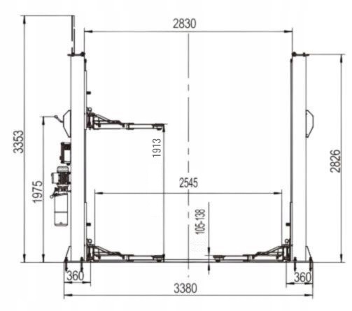 Підйомник оснащений асиметричними руками. Асиметричні руки дозволяють підняти машину більш стійкою. Ось їх розміри: