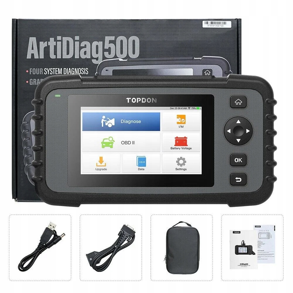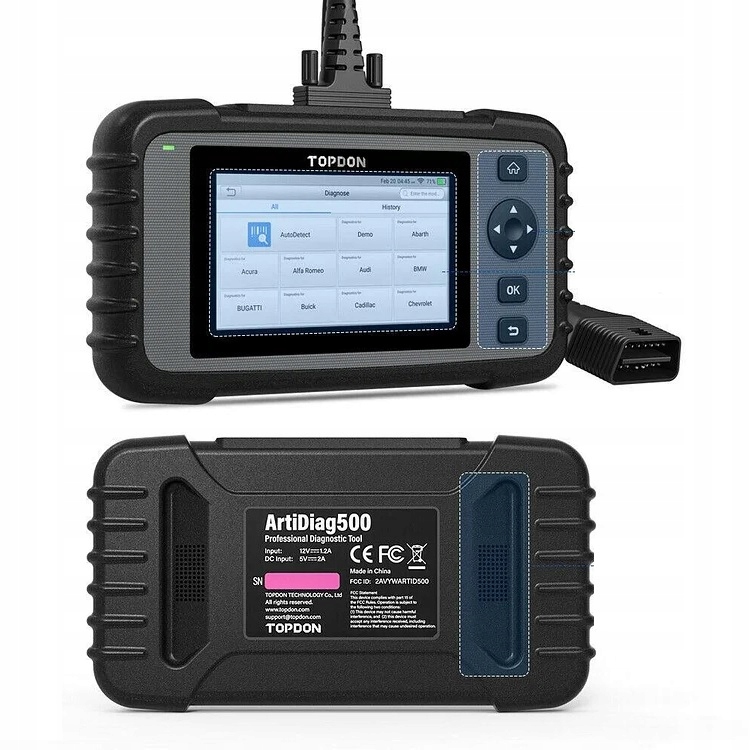 Topdon ArtiDiag 500 — доступний діагностичний сканер із точною діагностикою двигуна, коробки передач, ABS, подушок безпеки (SRS) для 57 марок автомобілів у всьому світі.