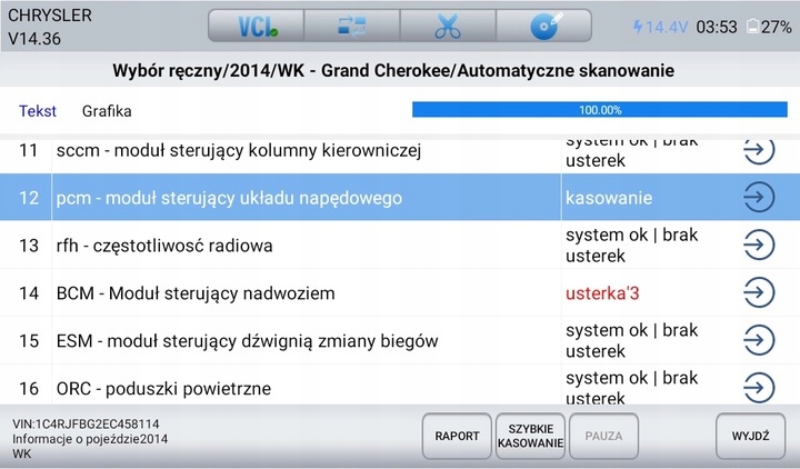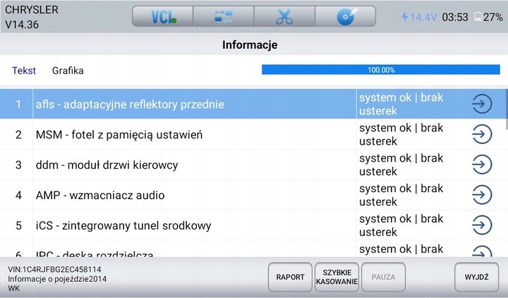 Діагностик повністю працює в польській Ви купуєте, ліцензований, оригінальний тестер Autoxscan. P> Важливо!