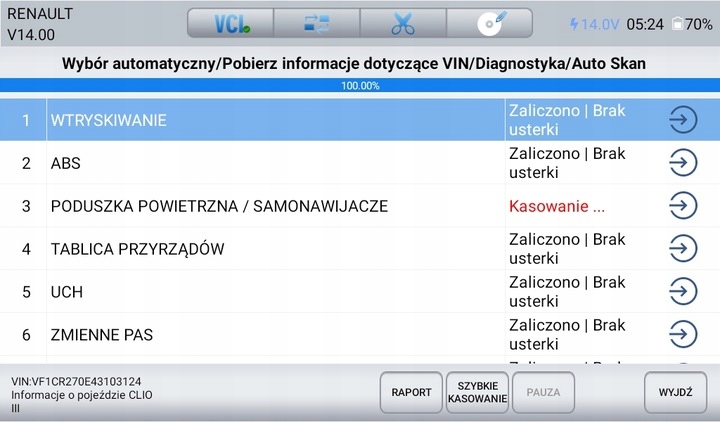 - Автоматичне сканування всіх модулів транспортного засобу
