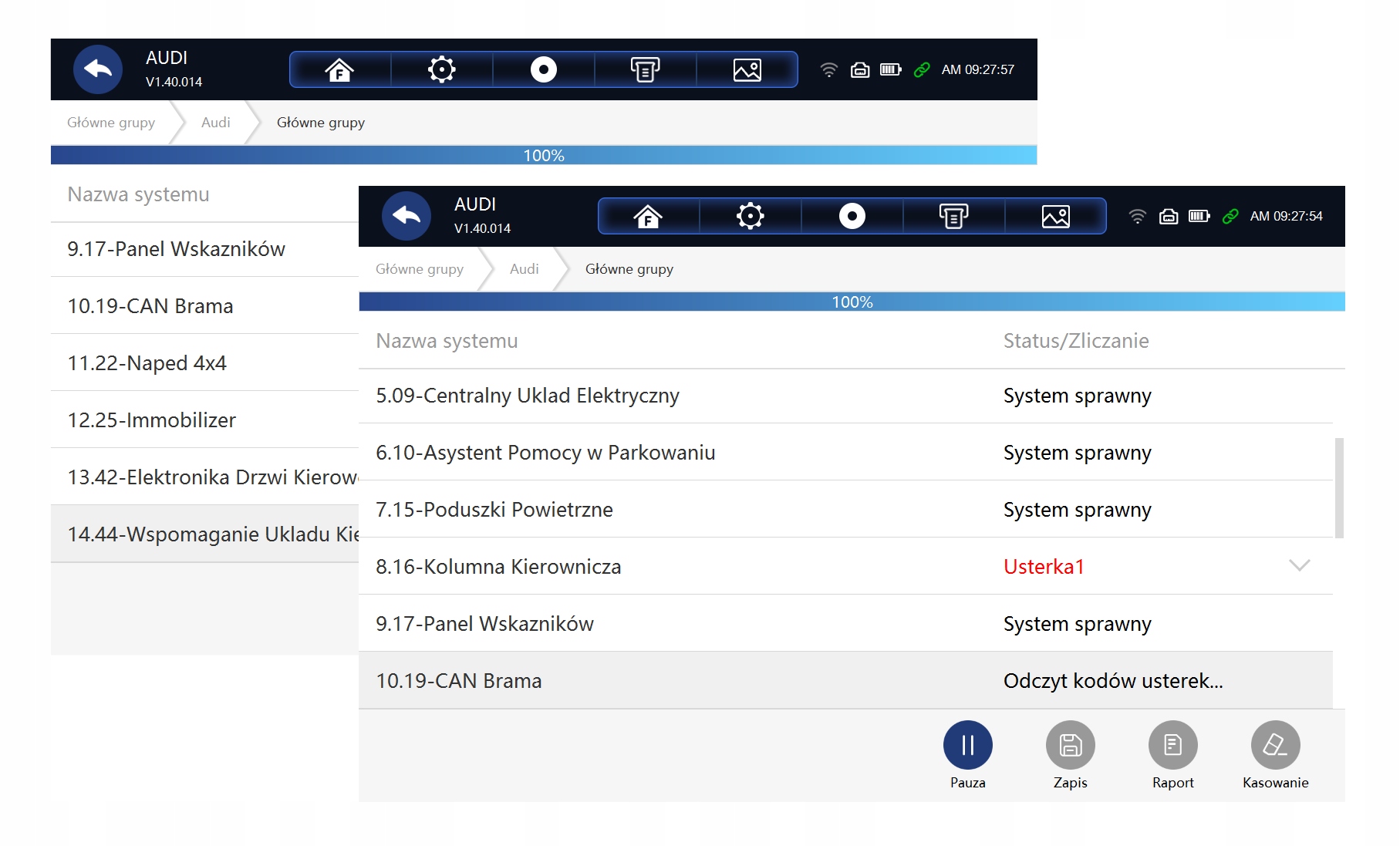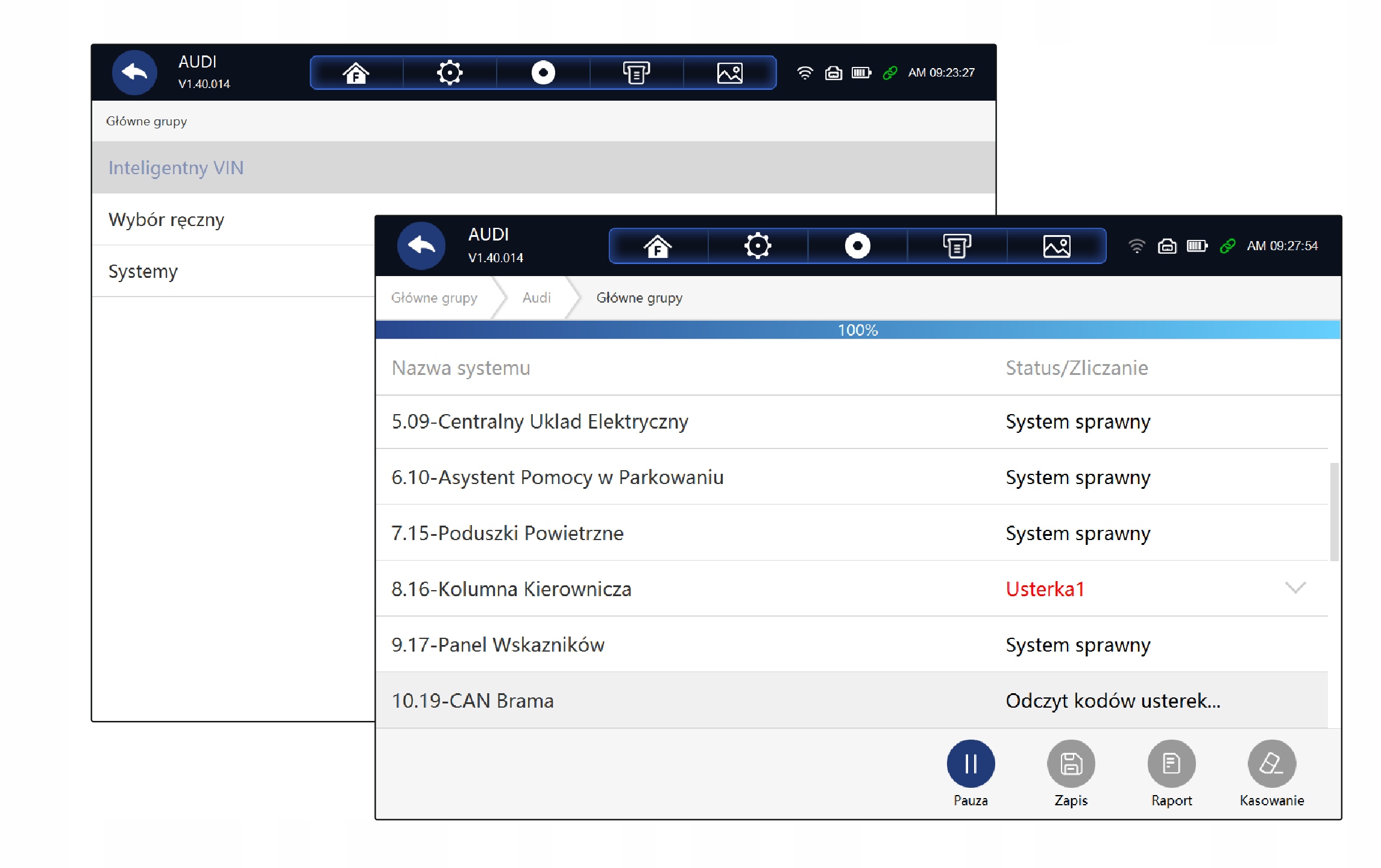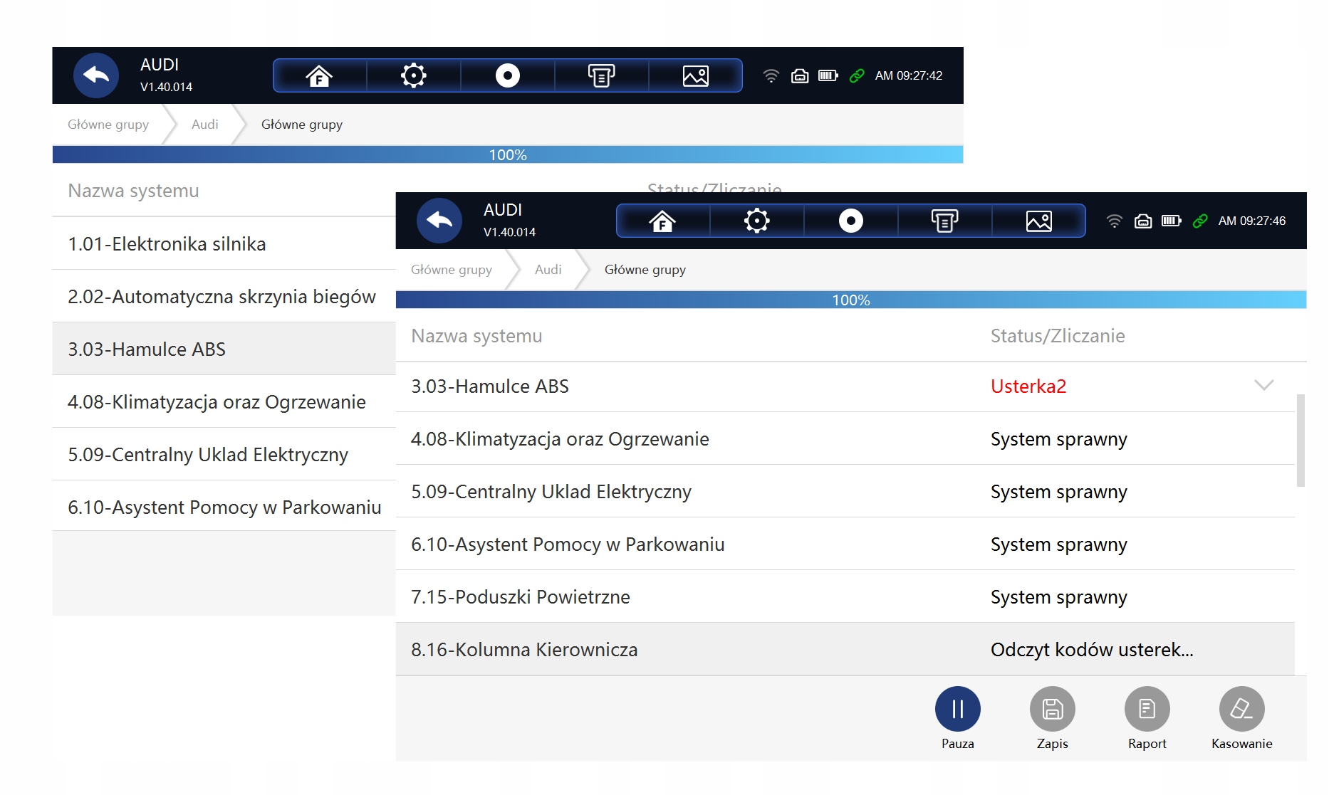 - повна підтримка для електричного стоянкового гальма EPB (перевертання затискачів при заміні колодок, налаштування сили тиску поршня, товщини колодок)