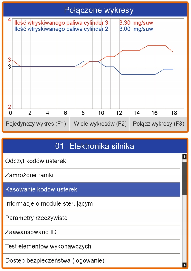 - повна підтримка сажового фільтра DPF (перевірка рівня нагару, скидання, регенерація, адаптація після заміни)