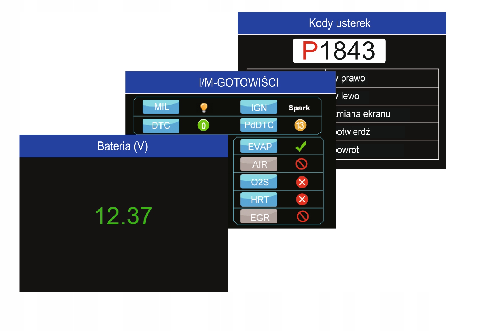 Тестер - це незалежний пристрій, оснащений кольоровим дисплеєм, гумового бронеавтомобільного корпусу, та швидким процесором ARM. Він працює безпосередньо з діагностичного роз'єму автомобіля і має повне польське меню (включаючи повні польські описи несправностей). Кохана!