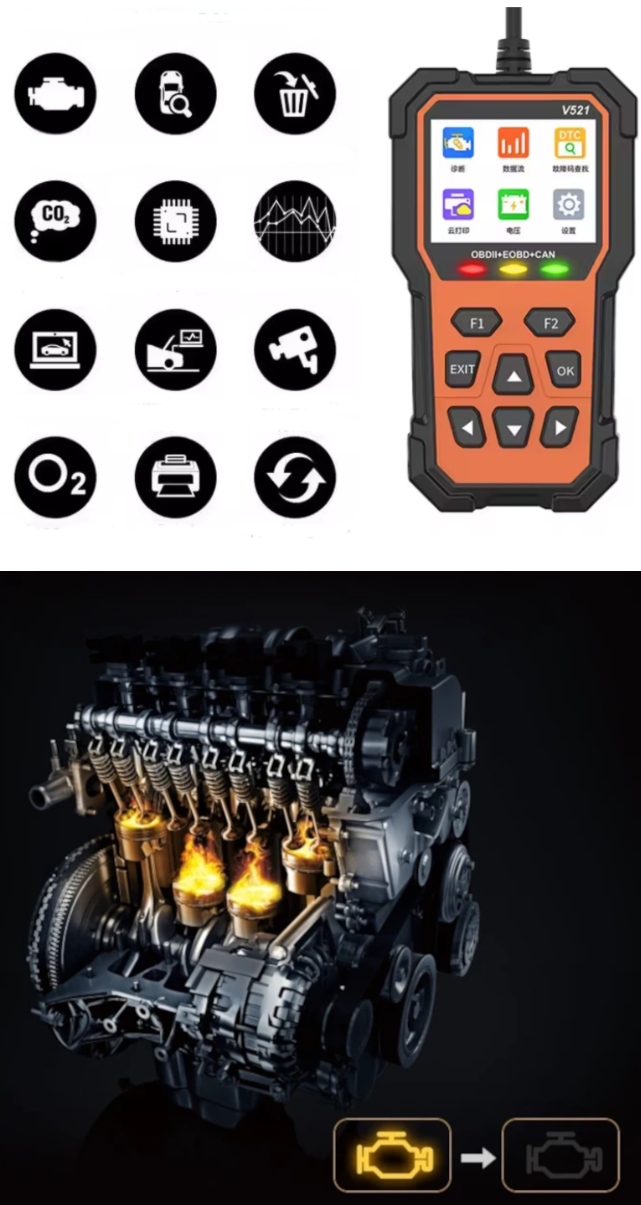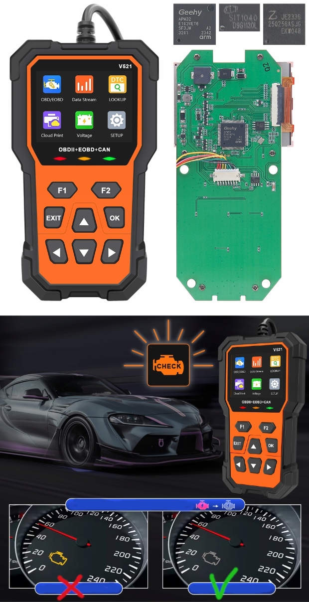 - Це простий і швидкий тестер для зчитування та видалення основних помилок (включно з CHECK ENGINE).