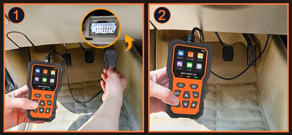 ✅ Щоб скористатися тестером, просто знайдіть розетку OBD2, увімкніть запалювання, а потім підключіть пристрій до розетки та насолоджуйтеся робочим обладнанням.