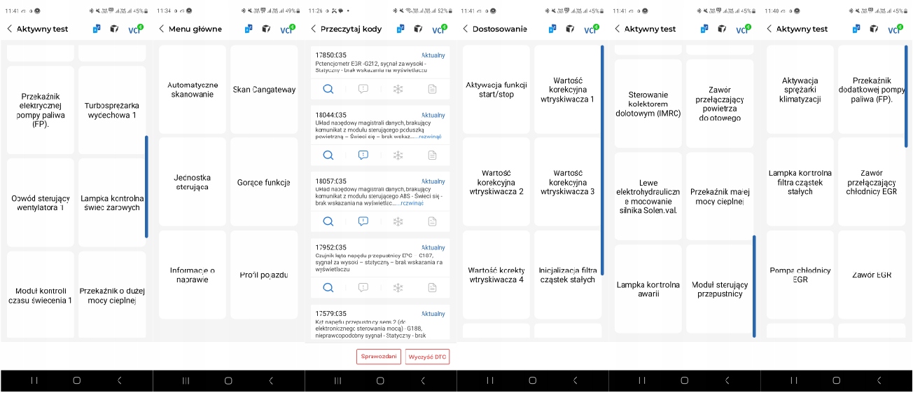 - перевірка виконавчих механізмів (активація клапана EGR, двигуна вентилятора, показання лічильника, центральний замок тощо..)