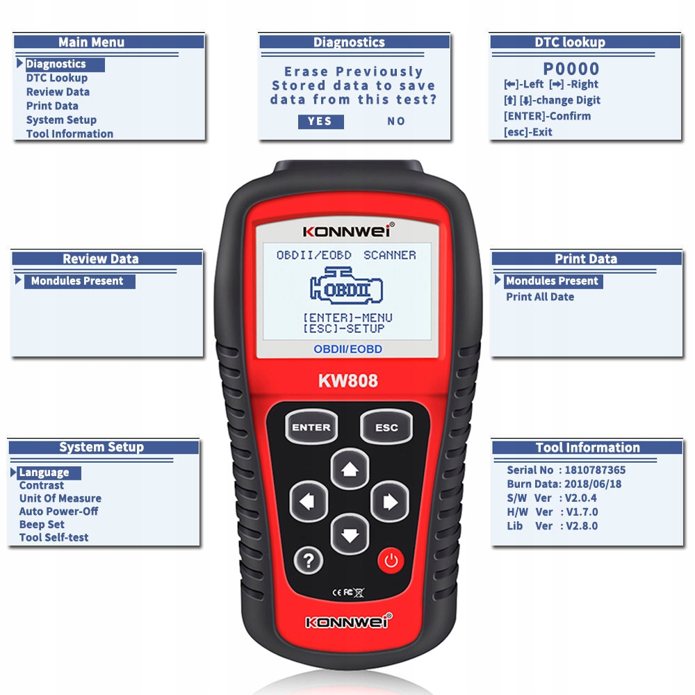 Діагностичний вимірювач, сканер OBD2 Konnwei KW808