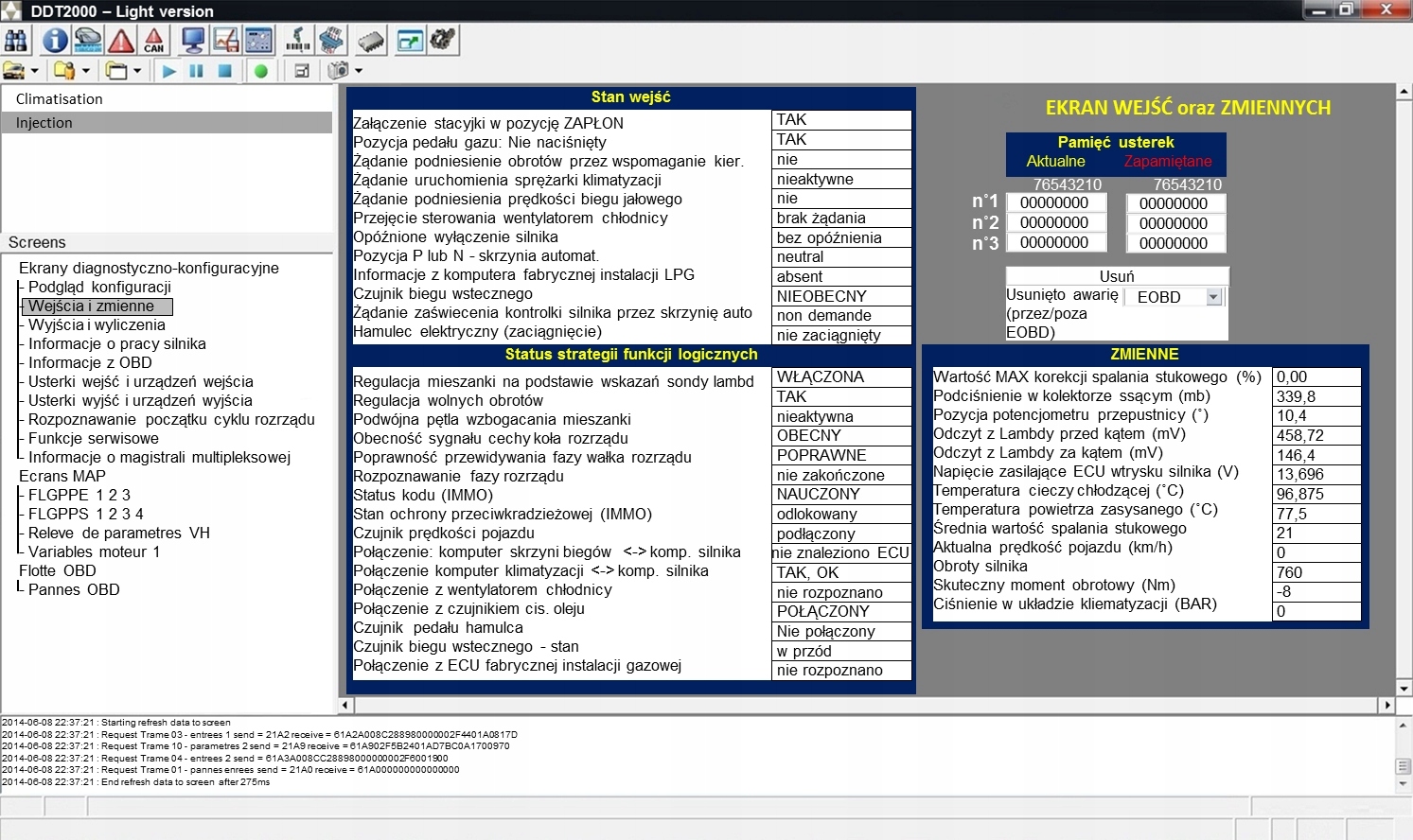- перегляд робочих параметрів під час руху, т.зв блоки вимірювання(наприклад, тиск наддуву, час упорскування, корекція впорскування, синхронізація часу PD, температура, витратомір, індикатори тощо)