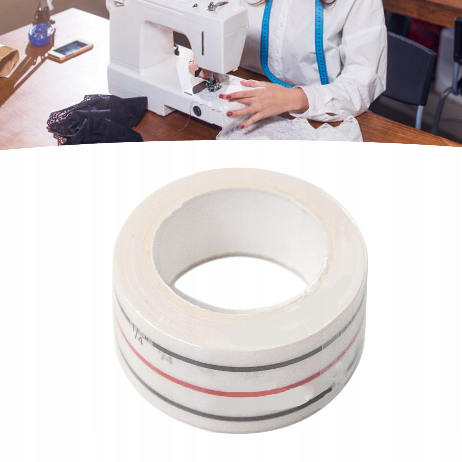 3. Основна функція: Швейна стрічка - це просто японська паперова стрічка, яка розміщується на передній плиті швейної машини, щоб діяти як направляння при швенні діагональних швів