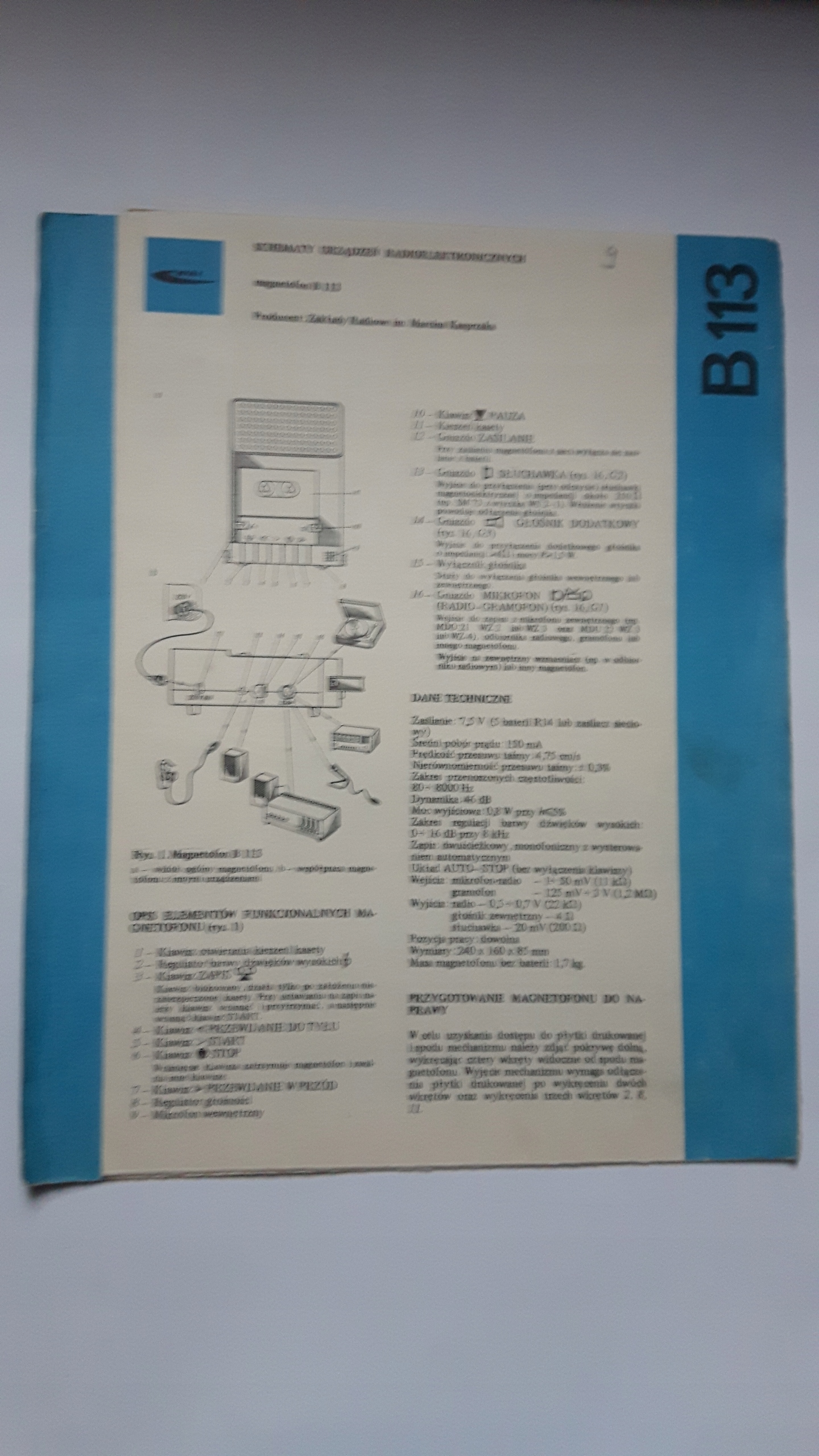 Діаграми пристроїв ... Магнафонон B 113, ред. WKIL 1984, с. 8, дуже хороший стан, я не надсилаю готівку на доставку.