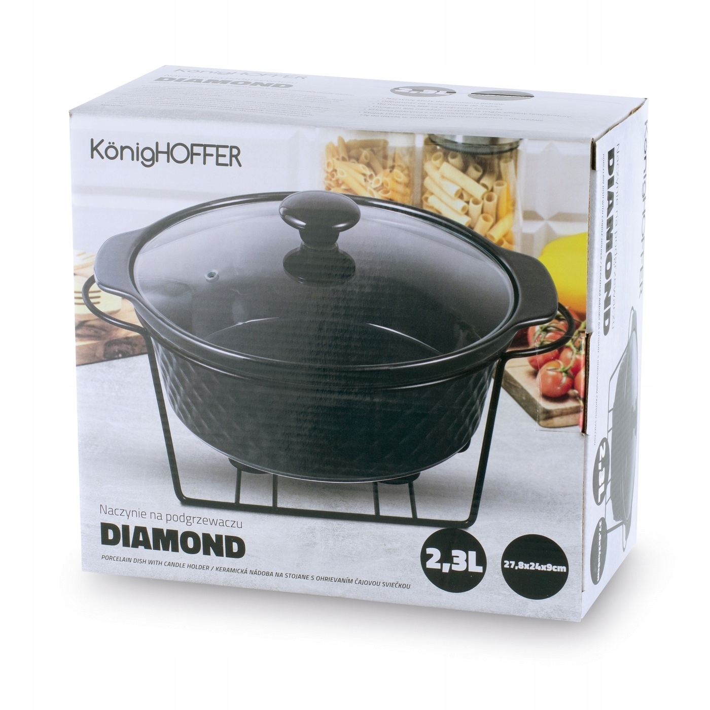 Діамантова посудина Konight на обігрівачі 2.3L порцелянової кришки чорний порцеляновий порцелян