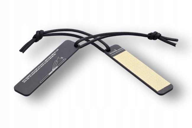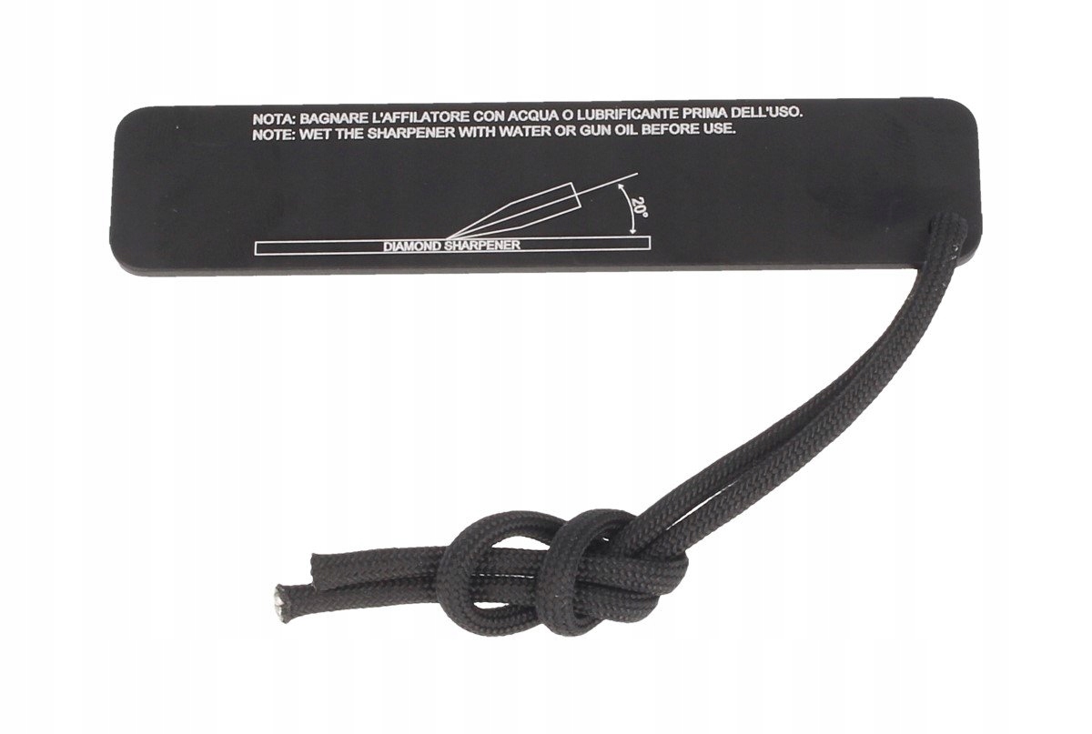 03.4100.0130 , плоский алмазний точильник італійської компанії extrema Ratio . Ідеально збирає сталь, заточення просте і приємне. Добре працює з попередженням про невеликі інструменти, включаючи Мачете, зубили, ножі: виживання, полювання, риболовля, кухня. Щоб затопити лезо, просто натисніть і перемістіть ріжучу кромку на поверхню точильки. Загостренням тримайте постійний кут заточення.