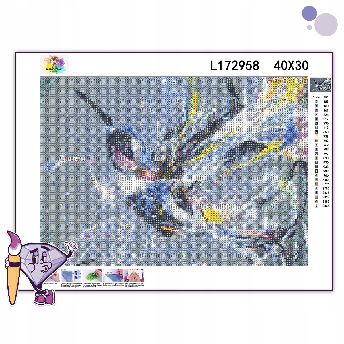 Діамантова живопис знаходиться в польській Діамантова вишивка або алмазна мозаїка . Створення рук -зробленого зображення -це чудове рішення для проведення вільного часу.