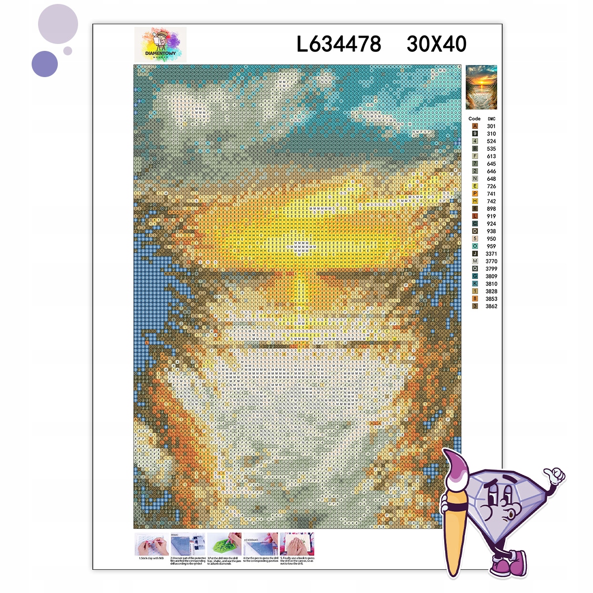Діамантова живопис знаходиться в польській Діамантова вишивка або алмазна мозаїка . Створення рук -зробленого зображення -це чудове рішення для проведення вільного часу.