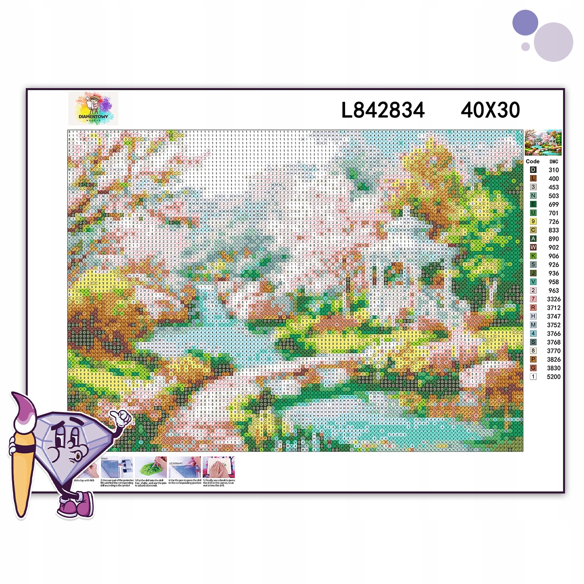 Діамантова живопис знаходиться в польській Діамантова вишивка або алмазна мозаїка . Створення рук -зробленого зображення -це чудове рішення для проведення вільного часу.