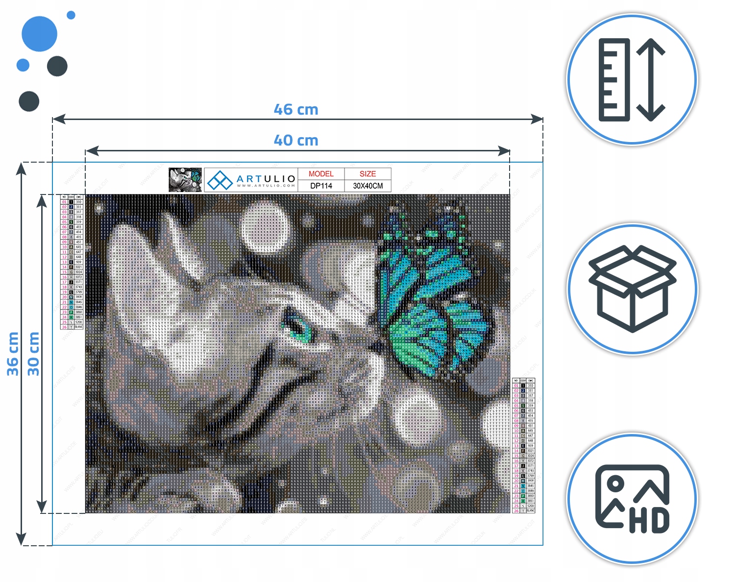 Вибираючи набір алмазної вишивки, зверніть особливу увагу на розміри поля для приклеювання, а не розміри всього полотна. Цей розмір зображення є найважливішим! - Не поля, таблиці та логотипи. Наші описи завжди містять надійні розміри - як схема, так і полотно!