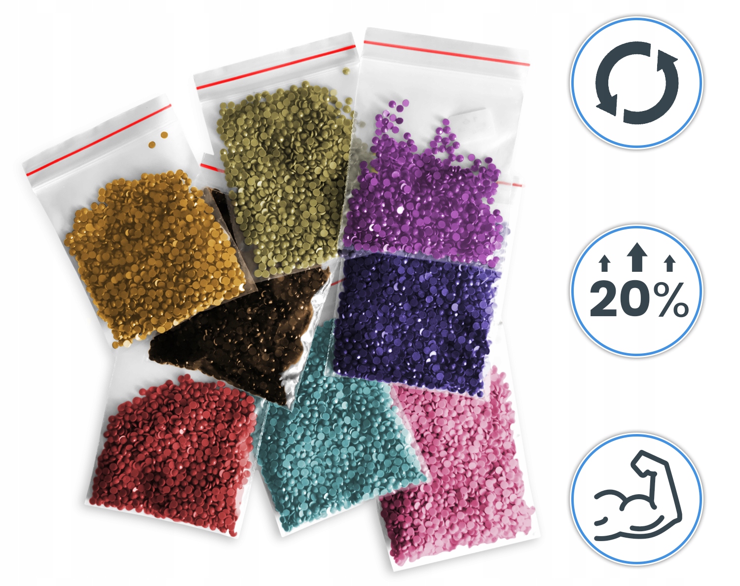 Для виготовлення вишивки використовуються два типи пакетів: термозварені, які відкриваються лише один раз, і тоді з них вилітають кристали, створюючи непотрібний безлад, і ми використовуємо: сумки-нитки, які можна нескінченно відкривати і закривати! Якому ви віддаєте перевагу?