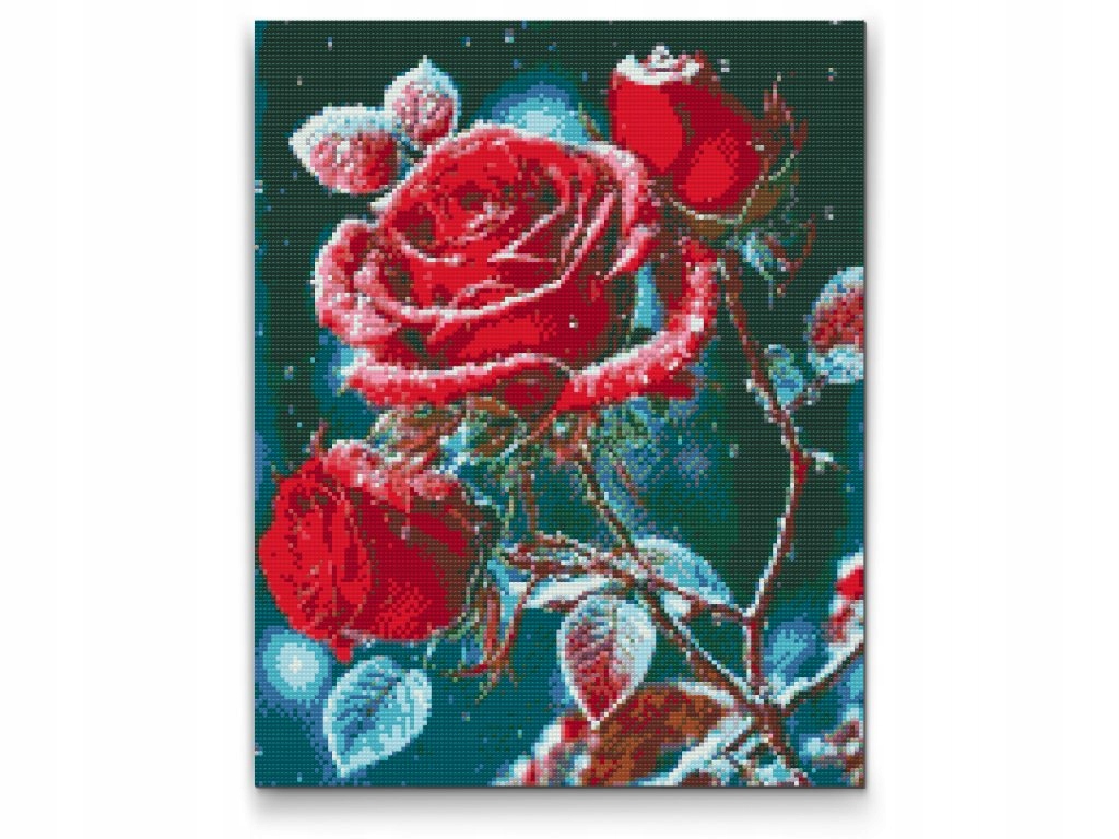 Діамантова вишивка Квіти Снігова троянда Червоний великий букет 80x100 см табурет