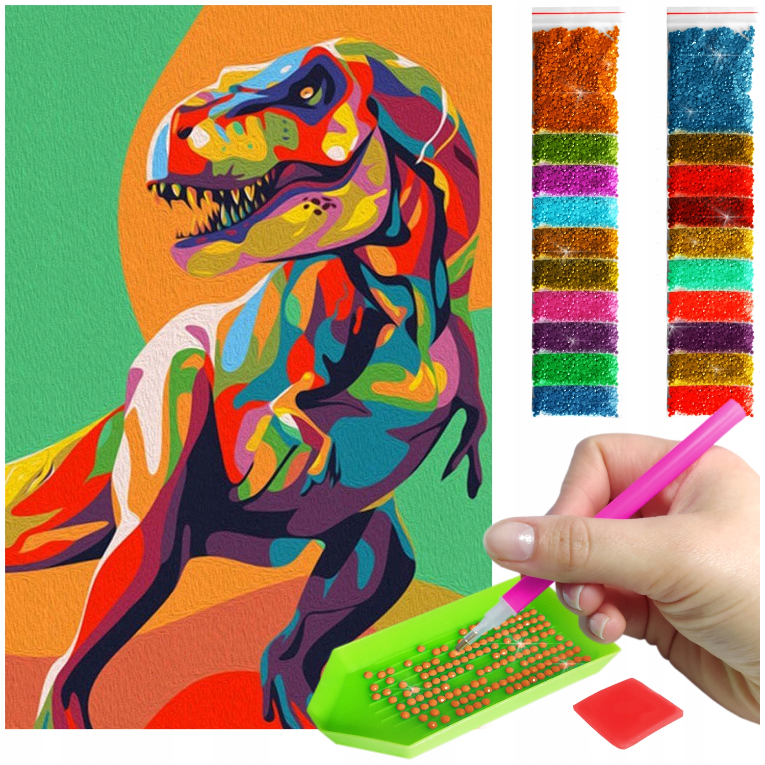 алмази - і їх близько 30 000. У кольорах, пристосованих до вибраного зображення. Кожен відтінок упакований в окремий мішок і описаний у числах, щоб прокладка проста і приємна. Набір містить приблизно на 20 відсотків більше кристалів, ніж вам справді потрібно. Це в тому випадку, якщо ви втратили кілька штук :)