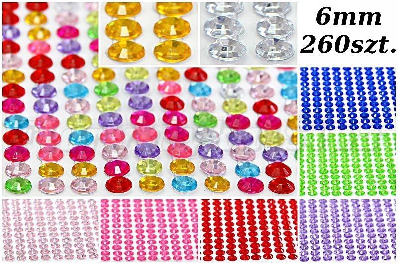 Діамантові стрази, клейові кристали, 6 мм/260 шт., 12 кольорів на вибір