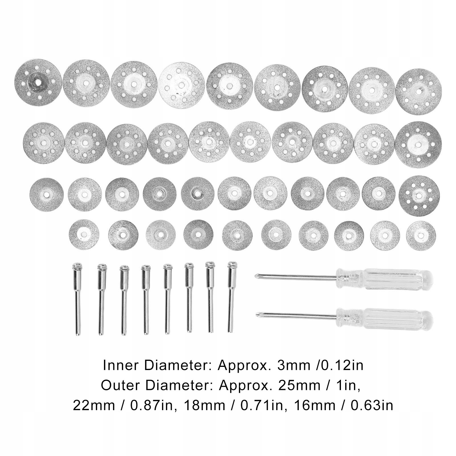1. Технічні характеристики: включаючи 40 ПК для вирізання 25 мм, 22 мм, 18 мм і 16 мм, з викруткою та рухом, зручним та практичним.