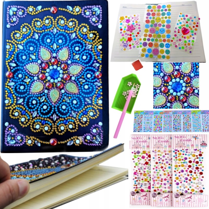 Створіть власну обкладинку щоденника в техніці алмазної вишивки. Покрийте всю передню кришкублискучими кристаламив яскравих кольорах!