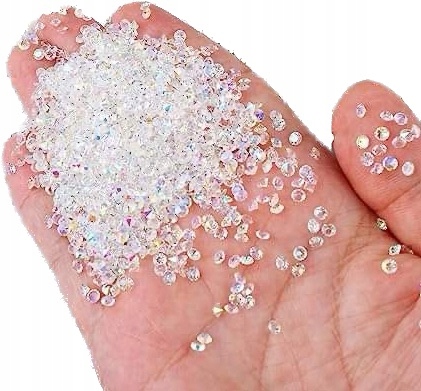 Ці діамантові намистини мають діаметр 3 мм і упаковані приблизно через 10 000 штук. Вони виготовлені з прозорого матеріалу
