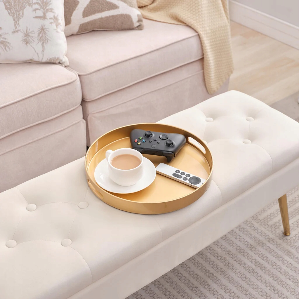 - Вкладка Пластикова порція: Кругла вкладка для подачі забезпечує стабільну поверхню для тарілок, чашок та столових приладів, що полегшує руху та насолоду від страви без розливу. Його можна використовувати не лише як лоток для сніданку для сніданку в ліжку, але і як парфумський лоток, лоток для ванної кімнати, піднос для ювелірних виробів, лоток для аксесуарів та лоток для складання. Наприклад, діаметр 13 ", ідеальний розмір для розміщення пульта дистанційного керування, клавіш, дрібних предметів, сонцезахисних окулярів та гаманців тощо. Встановіть його на консолі в передпокої, стіл для ліжка, обідній стіл, щоб підтримувати всі необхідні речі в порядку.
