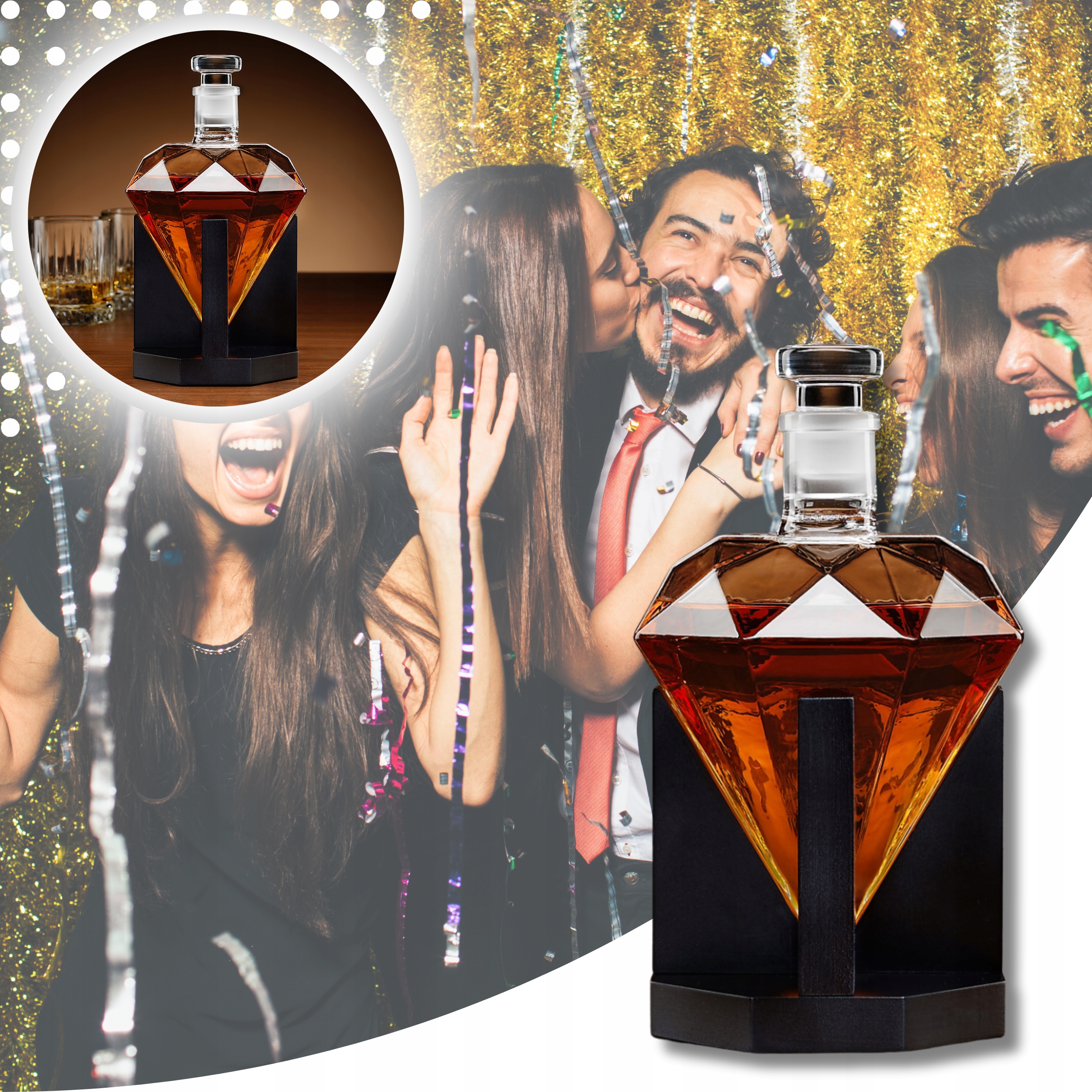Графин з унікальною формою діаманта привертає увагу та є елегантною прикрасою будь-якого столу чи бару. Це ідеальний вибір для людей, які цінують розкіш, стиль і бездоганне виконання.