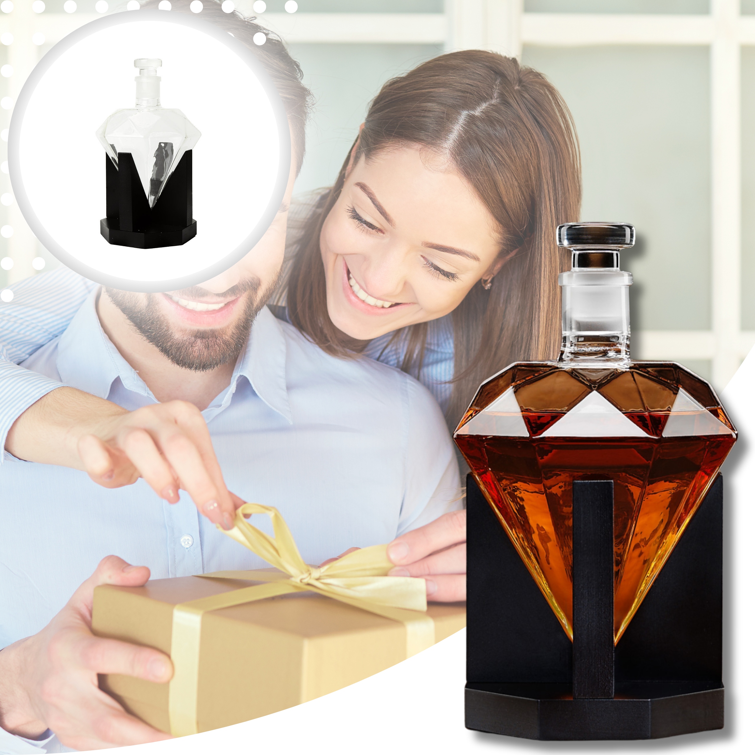 Запакований в елегантну коробку, графин ідеально підходить як подарунок на день народження, ювілей чи свято. Це практичний і розкішний подарунок для кожного любителя віскі, бурбону чи коньяку.
