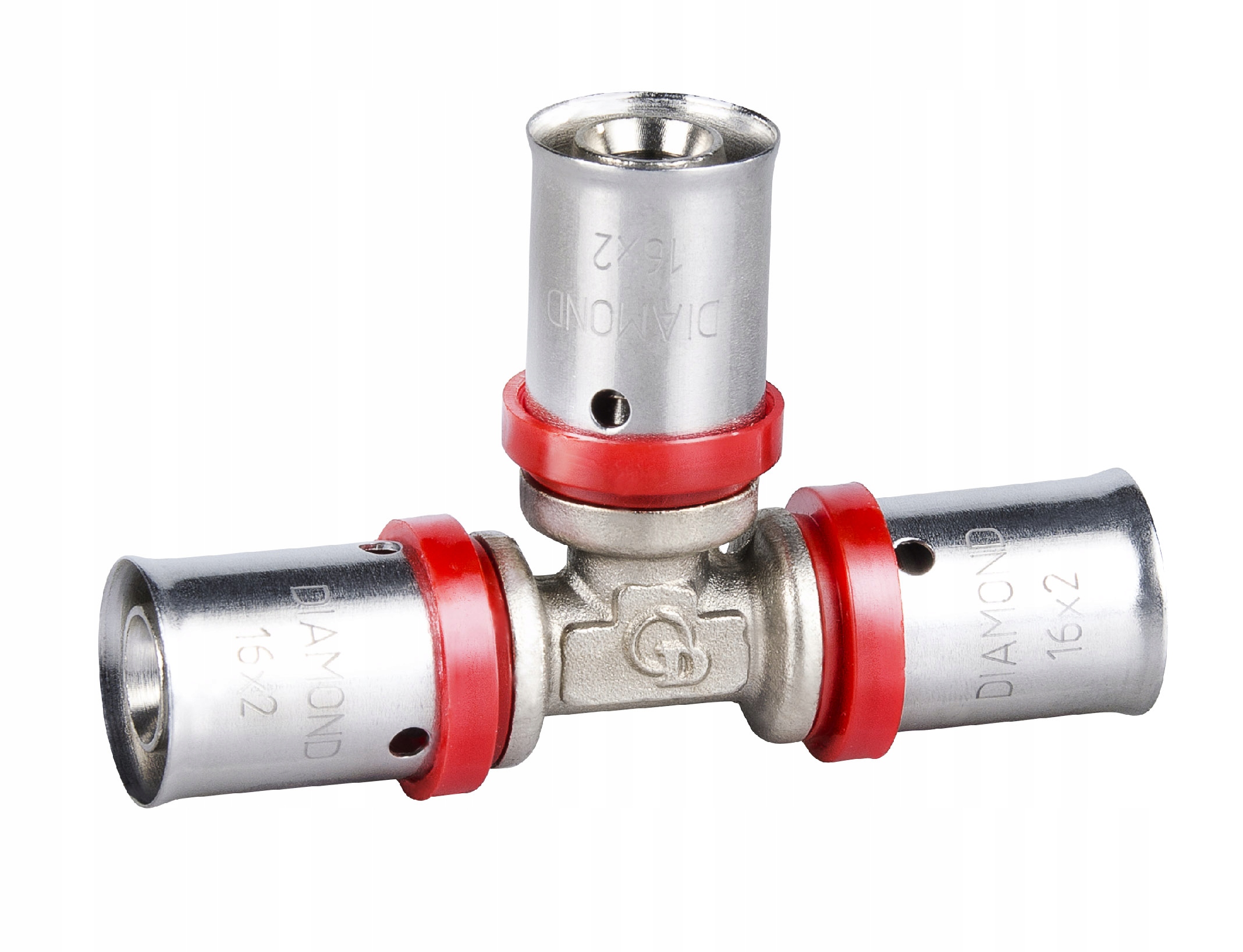 Система Diamond Pex Press — це повна система, що складається з латунних пресових з’єднувачів і багатошарових труб Pex/Al/Pex. Призначений для систем центрального опалення, холодної та гарячої води та стисненого повітря. Фітинги оснащені різьбою типу G і компресійними гільзами. Використовуйте губку U-типу, щоб затиснути з’єднувачі. Фітинги випускаються у вигляді: трійників, ніпелів, втулок і колін.