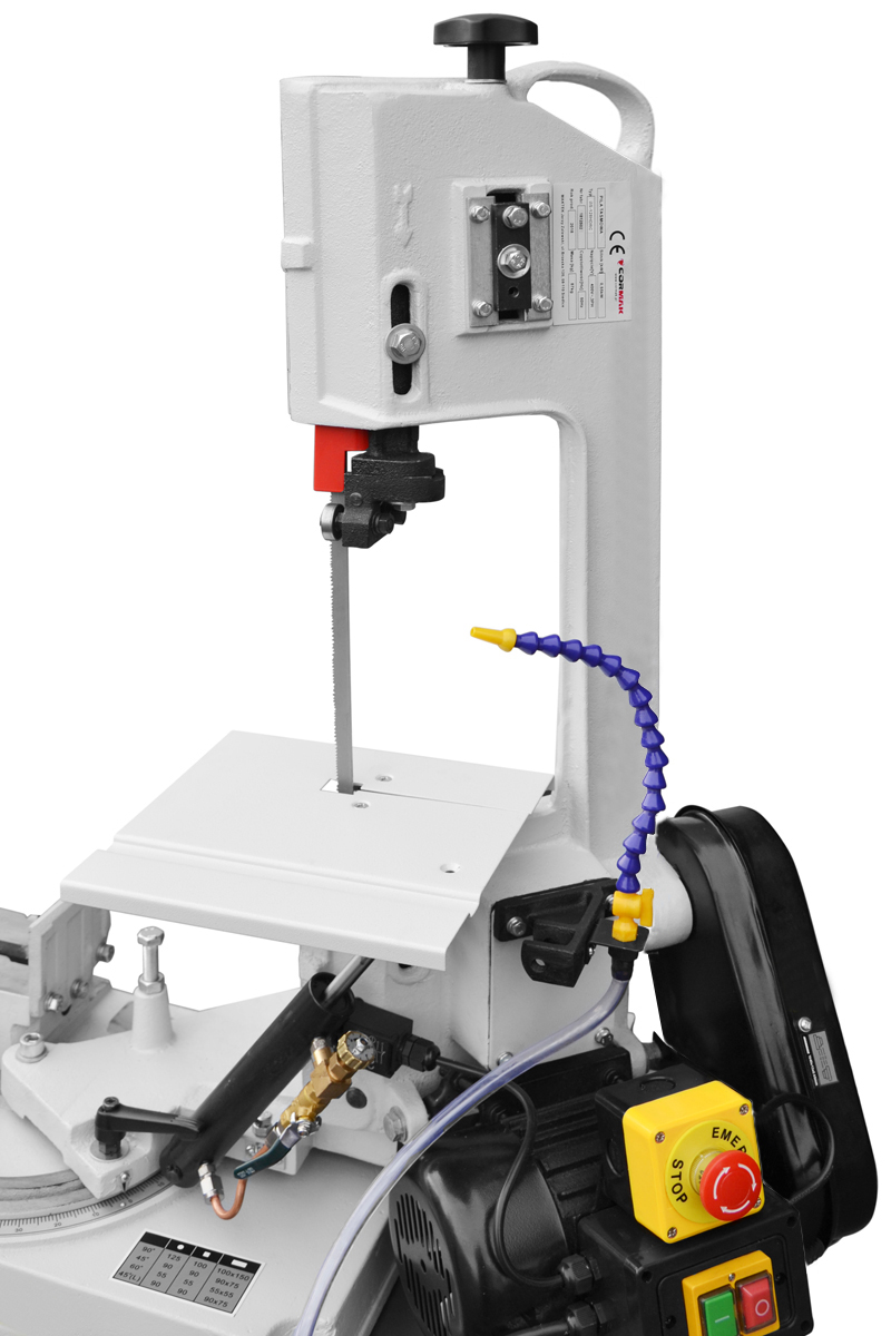 смуга підшипника, що веде стрічку, відповідає за простоту різання. Серійно обладнаний автоматичним маргінальним комутатором, кріпленням комутатора відповідно до IP 54. Рамка обертової пилки для подвійного скоси в діапазоні від -45 ° до +60 °. Гідравлічний циліндр (серійне обладнання) з метою опускання руки