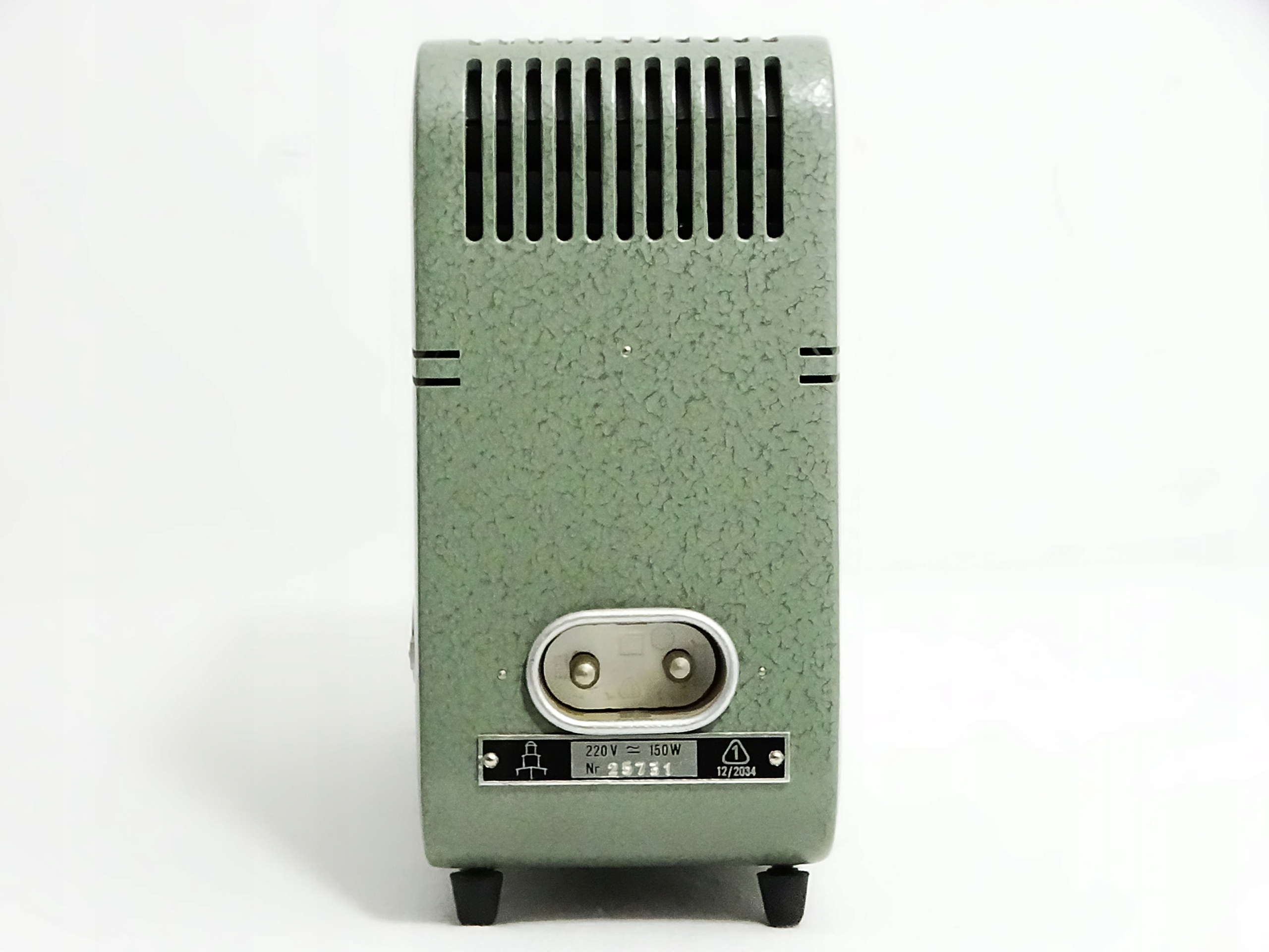 Pentacon Aspectar 150 Diaproject - слайд -проектор, що використовується ефективно у видимих на фотографіях, розміщених - я продаю без силового кабелю, тому що для перевірки він був запозичений у матері -in -Law, і це не хоче розлучатися з ним. Такий кабель можна придбати в Інтернеті, їх там багато. Aspectar 150 - це класичний діап'єктив, вироблений Пентаконом у сході Німеччини. Він був розроблений Манфредом Клаусом у 1957 році та виготовлений з 1961 по 1984 рік. Технічні дані: Виробник: Пентакон, VEB Модель: Aspectar 150 Тип: Діапроектор Матеріал: Алюмінієвий підрахунок Колір: Сірий або світло -синій з ліхтарем молотка: 150 Вт, з можливістю перемикання між 110 та 220 V Lens: Meyer Diplan 3.5/80/80 MM). 2,8/80 мм Розмір: 50х50 мм Вага: Близько 4 кг23 Історія: Aspectar 150 був популярним вибором серед користувачів у Східній Німеччині та інших країнах Східного блоку. Його цінували за його довговічність, надійність та простоту використання. Проектор був проданий ручним зміною слайдів і міг відображати як одиночні слайди, так і 35 мм фільми