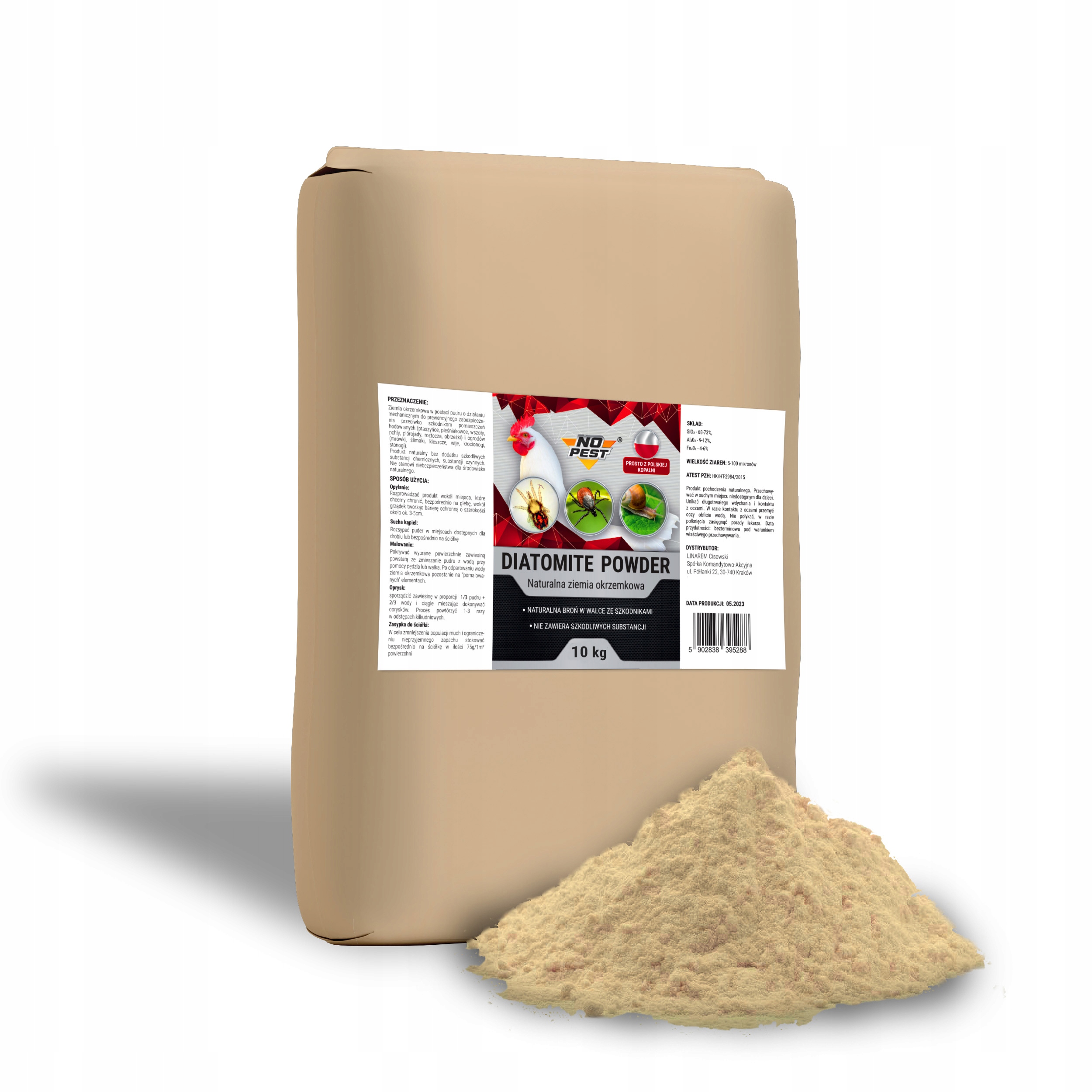 Діатоміт у формі порошку також захищає приміщення, наприклад, птахофабрики (курятники). ), голубники чи інші розплідні приміщення. У набір входить безкоштовний шпатель.