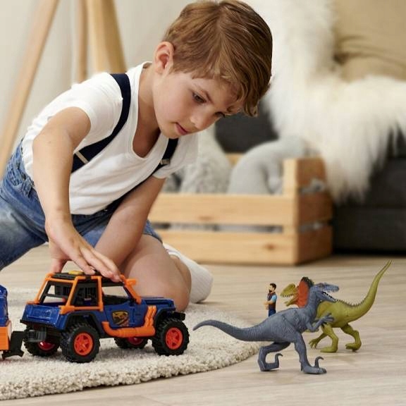 - Містить 2 динозаврів - окрім іграшкового автомобіля та причепа з кліткою та вантажною рампою, набір також містить рухому фігурку та двох динозаврів