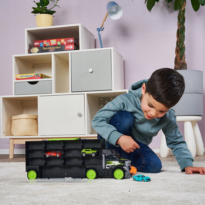 DICKIE TOYS TRANSPORTER SAMOCHODOWY Z AUTKAMI CIĘŻARÓWKA LAWETA NA RESORAKI