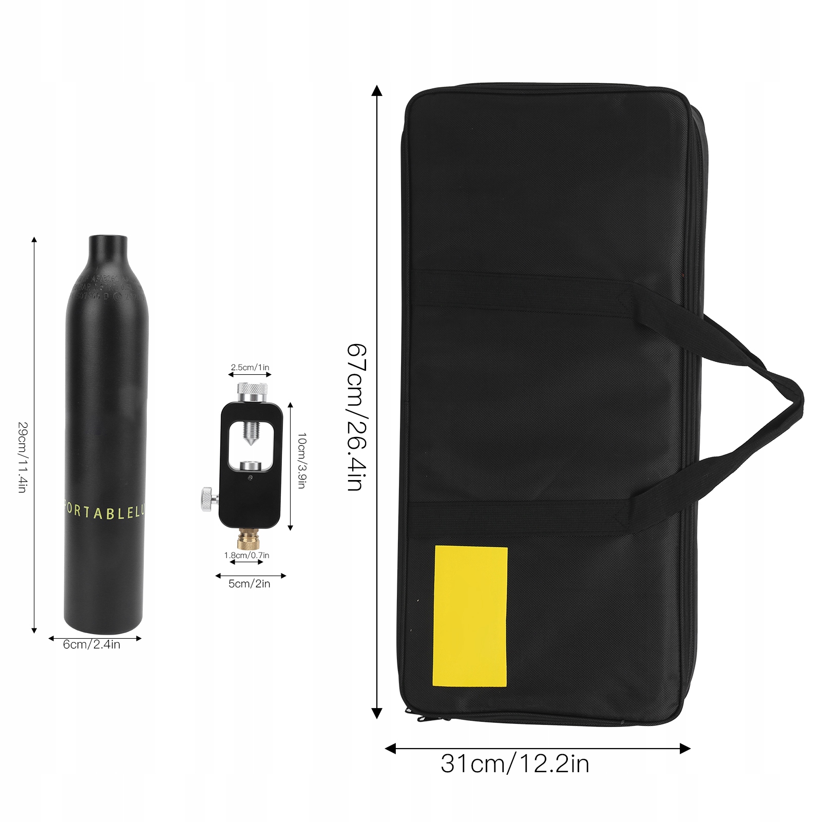 - Діаметр кисневого балона: прибл. 6 см/2,4 дюйма