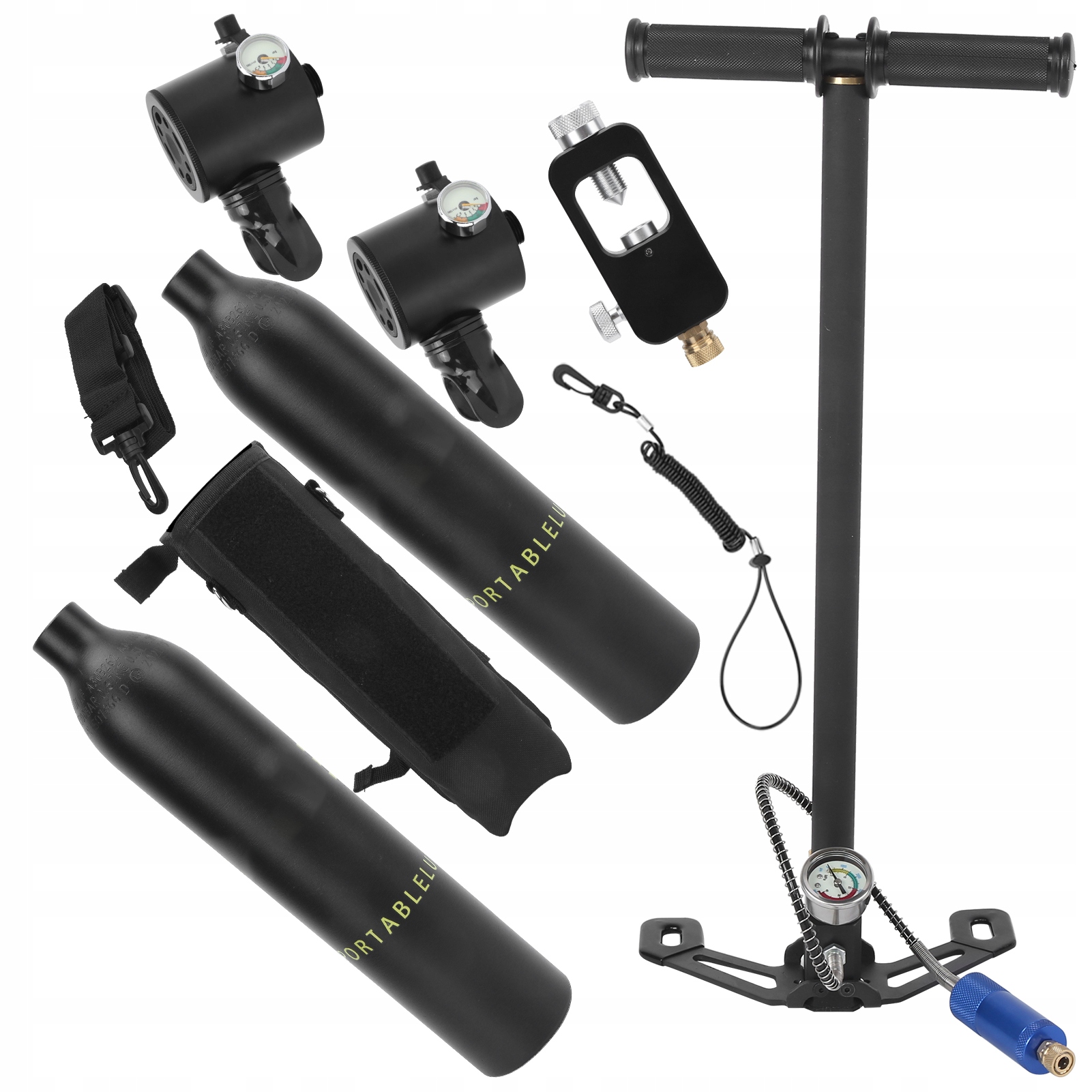 10. Портативна сумка для зберігання кисневого балона + ремінь, а також захист від іржі, ви не боїтеся впасти під час занурення, легко, економно та безпечніше; Портативну сумку для зберігання зручніше зберігати та носити.
