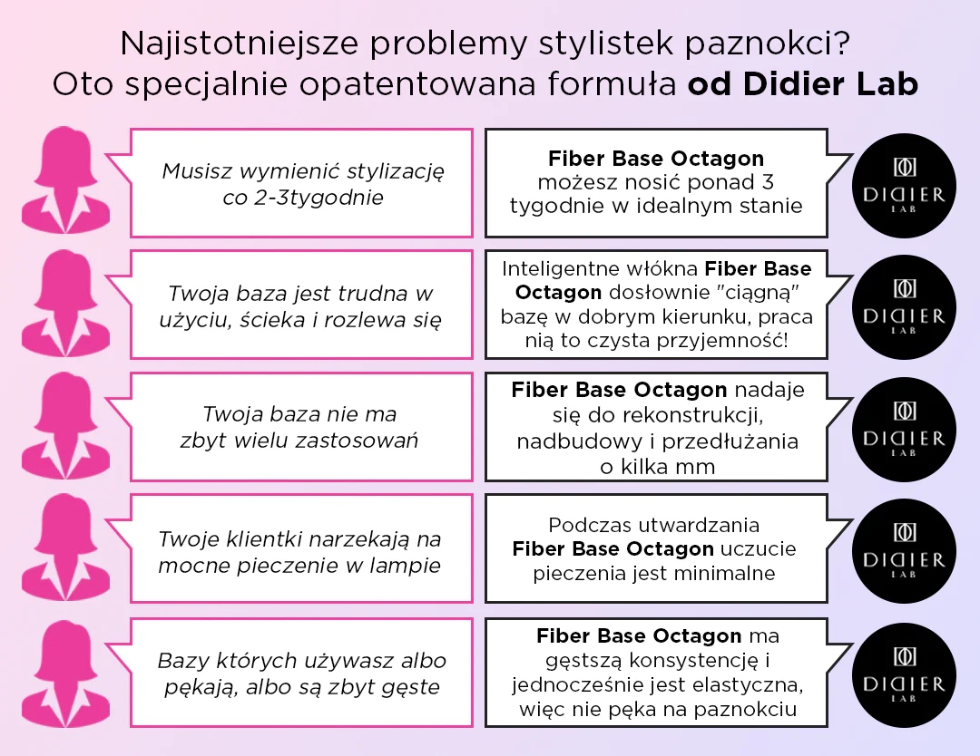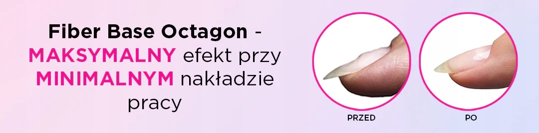 Fiber Base Octagon – це спеціально запатентована формула, яка відповідає на найважливіші проблеми нейл-стилістів: Fiber Base Octagon можна носити понад 3 тижні в ідеальному стані. Розумні волокна Fiber Base Octagon буквально «втягують» основу всередину правильний напрямок, працювати з ним - суцільне задоволення!Fiber Base Octagon підходить для реконструкції, надбудови та розширення на кілька мм.Під час затвердіння Fiber Base Octagon відчуття печіння мінімальне.Fiber Base Octagon має більш щільну консистенцію і в той же час є гнучкий, тому не тріскається на нігті Скловолокно створює надзвичайно міцне і водночас гнучке з'єднання молекул. Вони виконують основну функцію зміцнення нігтів. Манікюр буде надзвичайно довговічним, оскільки частинки скловолокна, з’єднані під час полімеризації, створять надзвичайно стабільну та міцну сітку, яка діє як захисний щит.