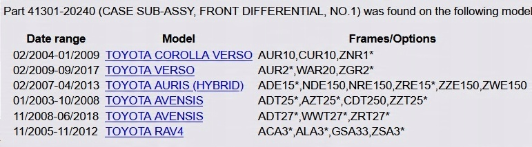Діфер Діфер житло, механізм oe toyota rav4 corolla verso auris avensis