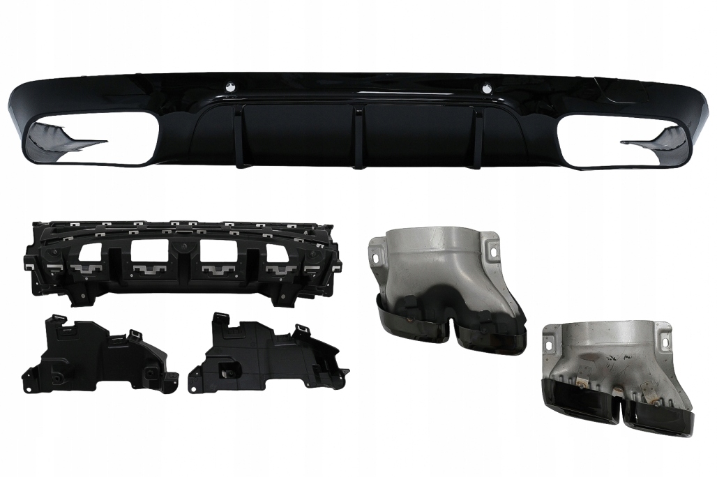 Задній дифузор із чорними наконечниками вихлопу для Mercedes CLS-Class C257 Sport Line (2018) CLS63 Design