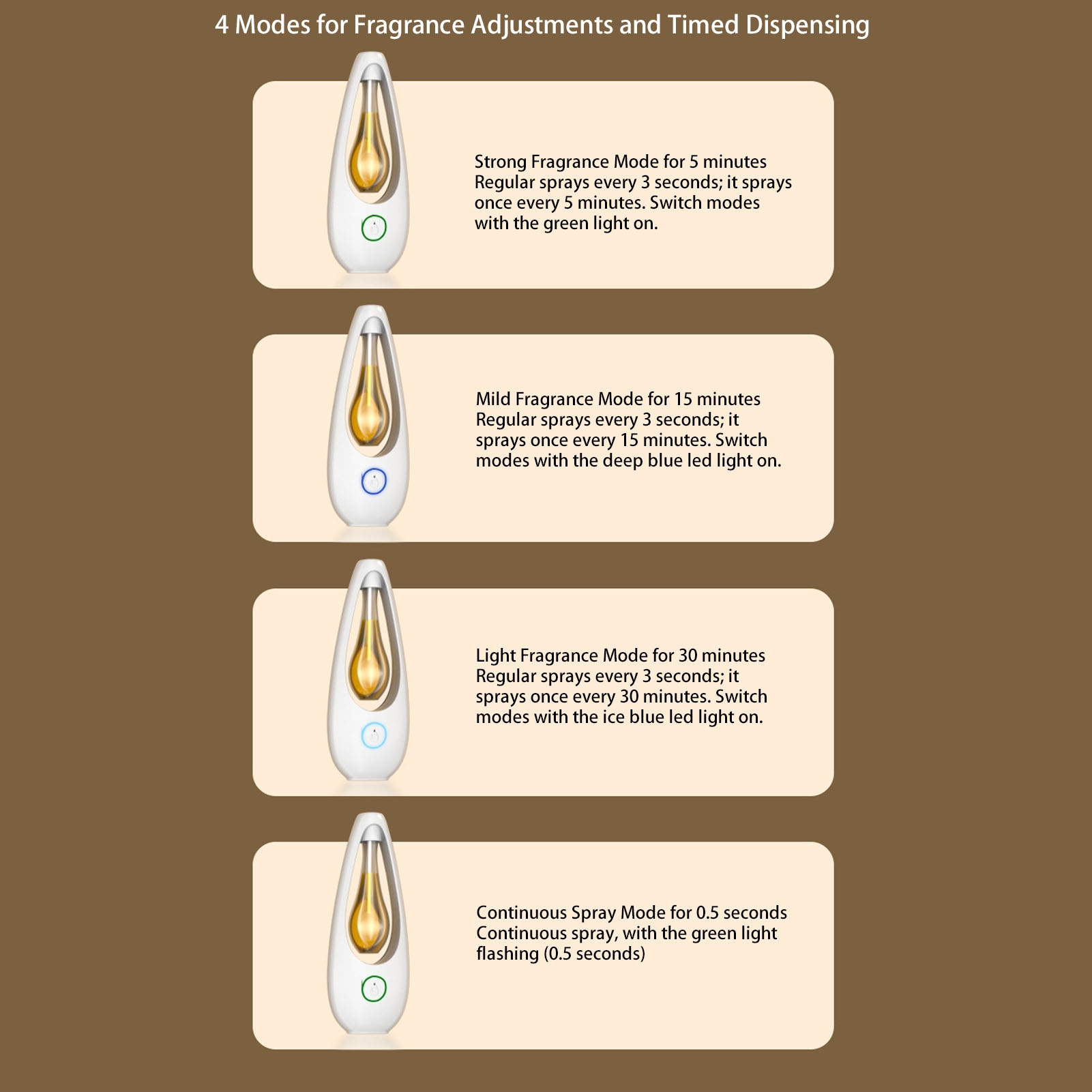 2. 4 Налаштований запах: у вас є можливість пахнути дифузором з чотирма рівнями контролю. Незалежно від того, ви любите тонкий запах чи сильний вибух улюбленого аромату, цей пристрій дає вам можливість адаптувати запах до ваших уподобань.