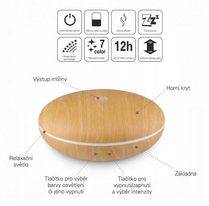 Аромадифузор, аромадифузор і ультразвуковий зволожувач повітря Airbi MAGIC 2 в 1 - темне дерево. Пристрій характеризується незвичайним, елегантним і сучасним дизайном, будучи декоративним елементом практично в будь-якому просторі. Airbi MAGIC - це висока якість і надійність, завдяки чому аромадифузор легко подарує вам чудовий настрій і дозволить розслабитися після дня, повного стресу і напруги. Аромат, що виходить від дифузора, наповнить ваш дім приємним запахом і замаскує неприємний запах сигаретного диму або тварин. Однак Airbi MAGIC - це не тільки аромадифузор, а й зволожувач повітря. Завдяки використанню ультразвукової технології його майже не чути. Airbi MAGIC завдяки 7-кольоровому підсвічуванню підтримує дитячу уяву та допомагає спокійно заснути.