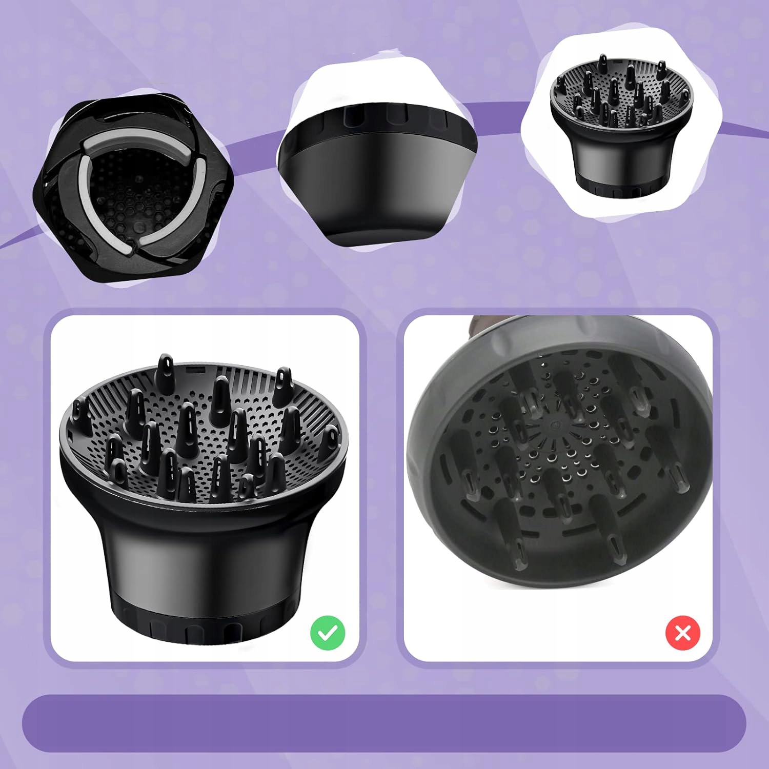Фен з дифузором має регульовану насадку діаметром 4-6,8 см, що дозволяє широко підходити до більшості фенів.