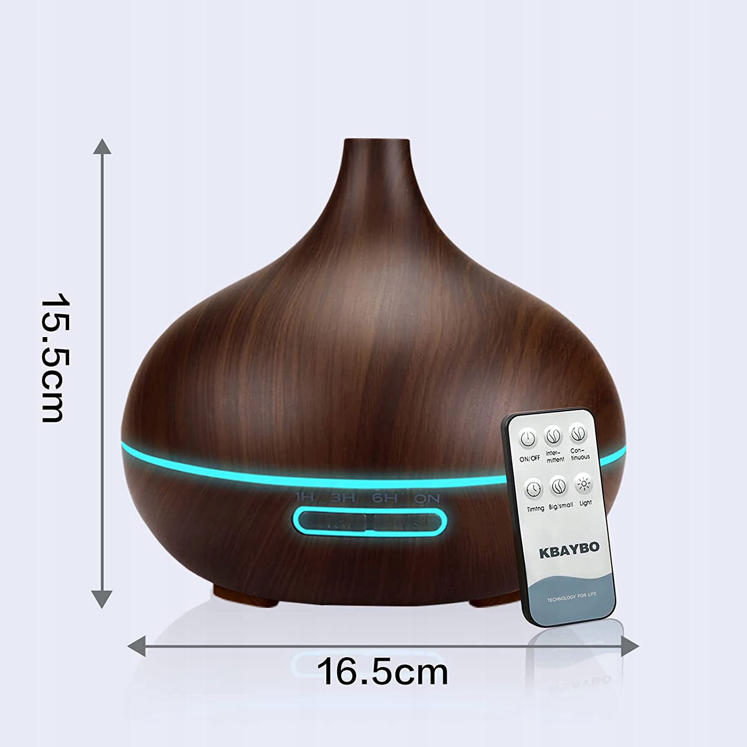 Цей зволожувач створено з використанням деревних текстур. Ви можете контролювати щільність туману від слабкої до сильної. Аромадифузор оновлено до 500 мл, максимальна ємність 550 мл і може працювати більше 6-10 годин. Відповідний робочий час для офісу та спальні.