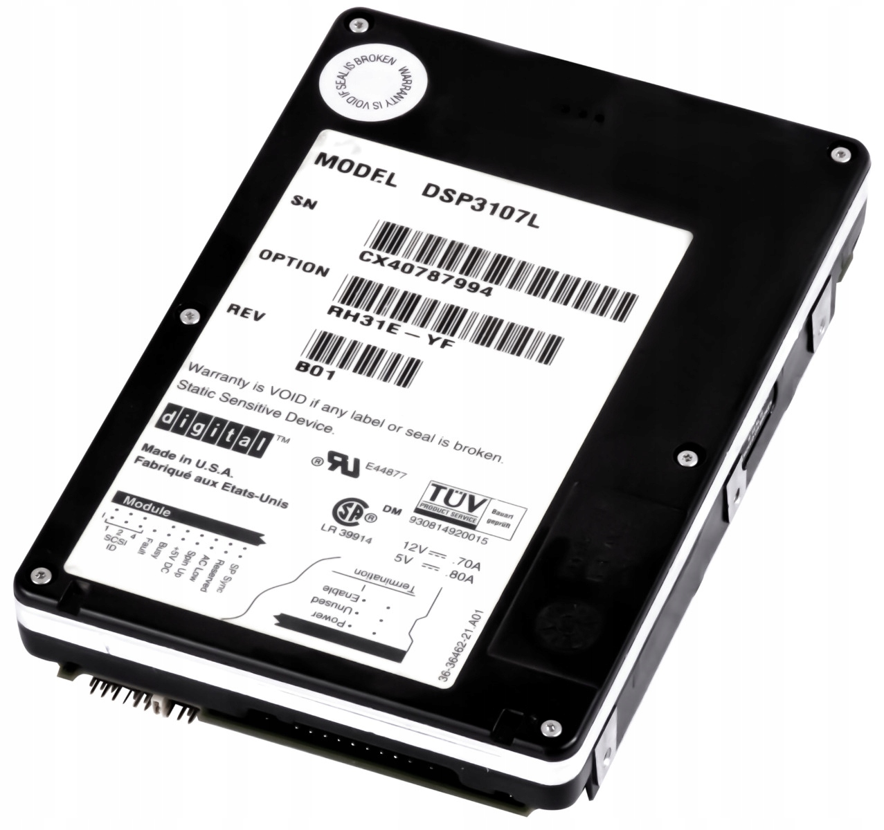 DIGITAL 1.07GB 5.4K SCSI 50-PIN 3.5'' DSP3107L