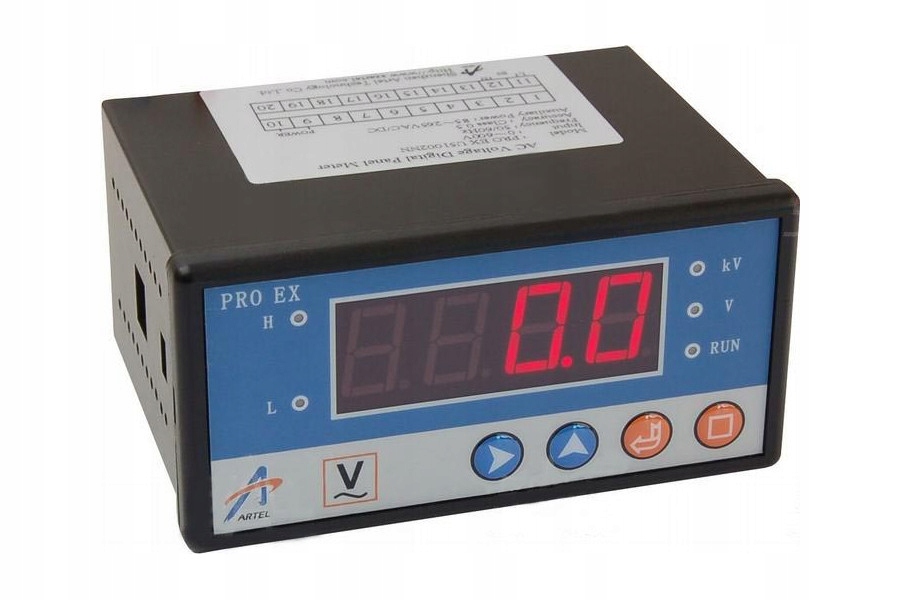 Digital Arttel AC AC 1-фазний диск. З доступу до клавіатури (захищений паролем) для налаштувань: VT 0,1 ~ 6500, HI, LO LITITS та так -Called повернення значення. Автоматична зміна вимірювальних одиниць [v/kv] цифровий червоний світлодіод з ультра яскравістю. Вхід 0 ~ 600 В змінного струму, точність 0,5%, джерело живлення 85 ~ 265V AC/DC, IEC1010, EN61010, панель 96x48 мм. Li> Цифровий, червоний світлодіод з ультра яскравістю